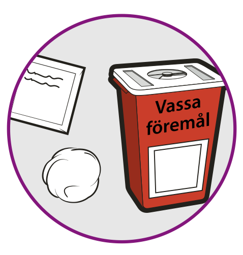 - Lämna in behållaren för vassa föremål på apoteket när den är full.