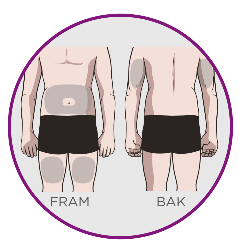 överarmen (endast om någon annan ger dig injektionen). - Se till att variera injektionsställe varje gång du ska ta en injektion.